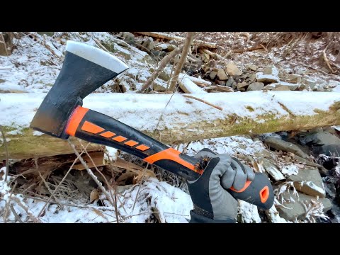 斧で倒木カチ割って冬眠中のスズメバチを発掘する