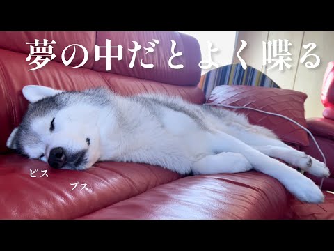 新年早々一生懸命寝言を言っているシベリアンハスキー