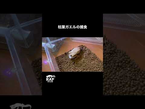 枯葉に擬態したカエルの捕食シーン