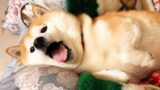 柴犬がストーブ前でふぬけていると突然明かりをつけられて・・・