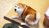 柴犬が編み物を積極的に手伝ってくれるけど、余計なお世話すぎる。