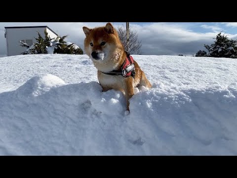 柴犬さん勇気を出して雪山を登った結果、こうなる。