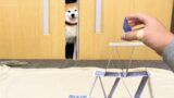 段差を降りると見せかけてただかっこいいポーズを取るだけの柴犬