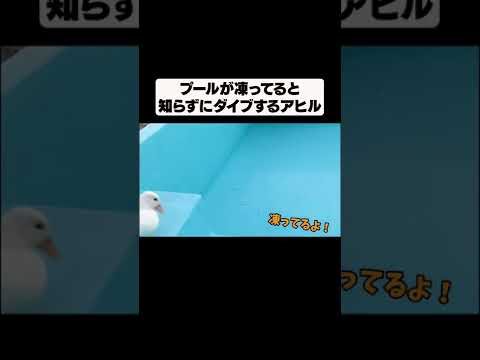 水に興奮して飛び込んだら凍ってた時のアヒルの反応が面白すぎた!#shorts