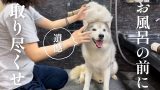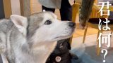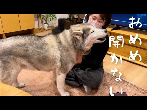 深夜に帰宅した姉に寝ぼけながら甘えるもほとんど目が開かないシベリアンハスキー