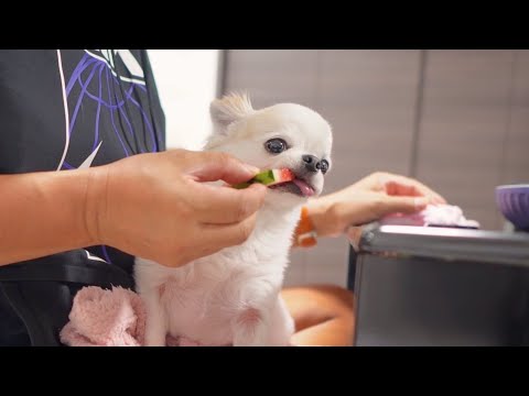 犬に初めて手からスイカをあげたら一生懸命食べる姿が想像以上に可愛すぎた!