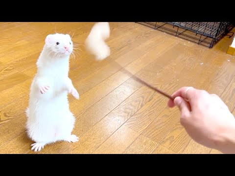 猫じゃらしの遊び方がかわいすぎるフェレット