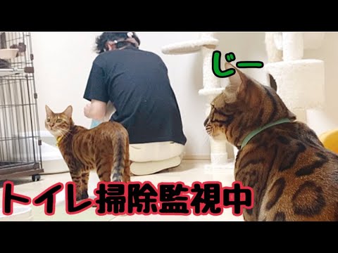猫にトイレを早く掃除しろとせがまれたので監視されながら掃除します