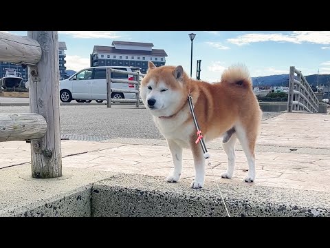 珍しく階段に挑戦しそうなので褒めようとしたらすでに戦意を喪失したぬけがらと化していた柴犬