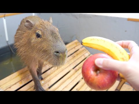 生まれて初めてバナナを味わうカピバラ