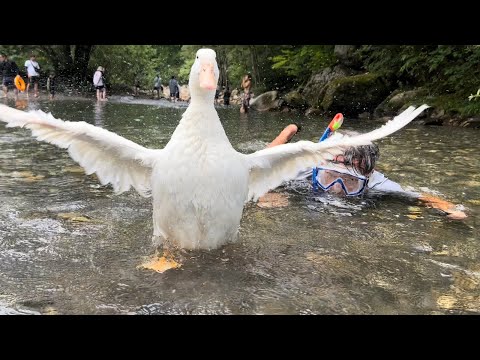 生まれて初めて川で泳いだアヒルの姿に感動した(にわとりもいるよ)