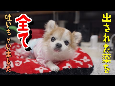 病院で貰った薬を全て吐いてしまった老犬チョッピさん・・・
