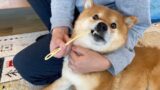 病院にて全エネルギーを使い果たした柴犬が可愛い。