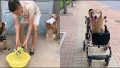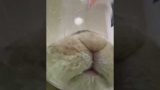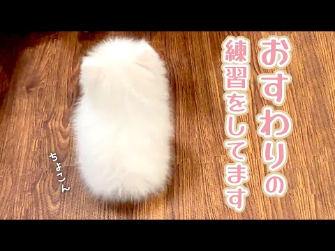 白いモフモフのワンコがおすわりの練習をしています|PECO