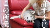盗み食いがバレた瞬間なぜかもっと盗み食いをしようとするシベリアンハスキー