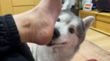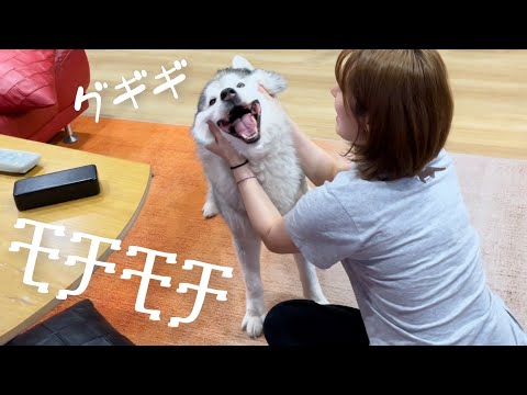 真剣に戦っているのにほっぺたをቺቻቺቻされてしまうシベリアンハスキー