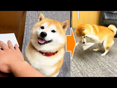 紙ヒコーキの完成をわくわく待つ柴犬→飛距離に満足できず悲しみの大暴走