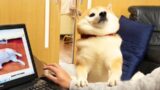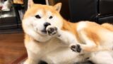 肩モフに触ろうとする人間を高速パンチで牽制するがリーチの問題で全く脅威にならない柴犬
