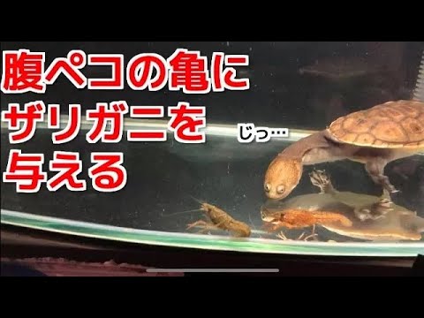腹ペコの亀にザリガニを与えてみる