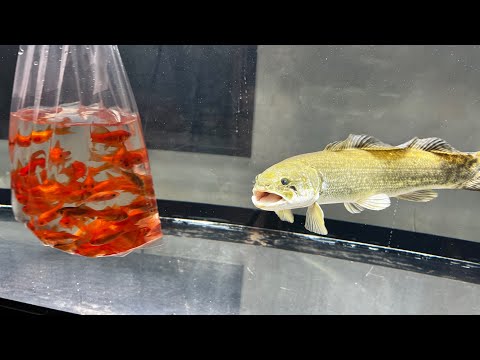 腹ペコの肉食魚が泳ぐ水槽に金魚50匹を投入