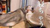 【水を】自らに枷を掛け、再度立ち上がることを拒絶するシベリアンハスキー【飲むだけ】