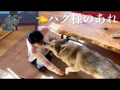 自分の抜け毛でハク様の真似をされて逆襲のパクチョをかますシベリアンハスキー