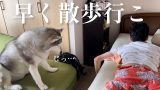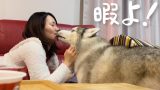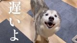 親友に自慢のオモチャを見せつけるだけ見せつけて貸してはあげないシベリアンハスキー