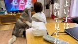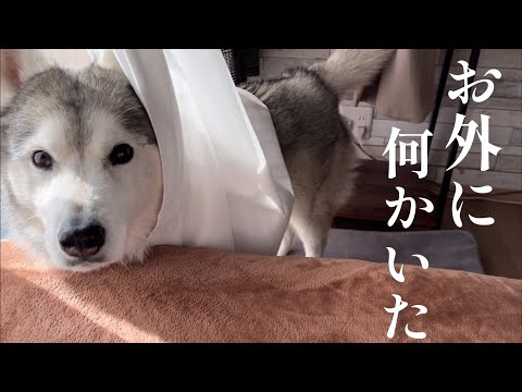 誰よりも真剣に自宅警備に励むシベリアンハスキー、アイコンタクトで結果を報告する。
