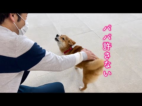 遅れて帰ってきたパパに寂しさのあまり激オコで詰め寄る柴犬が可愛い