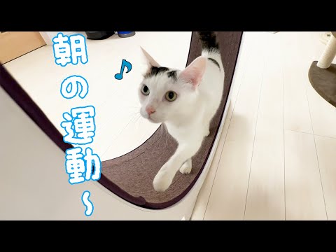 運動しよ!と言うと回し車を使ってくれる天才猫チロさん