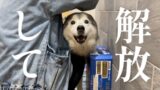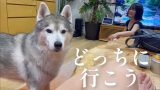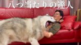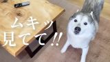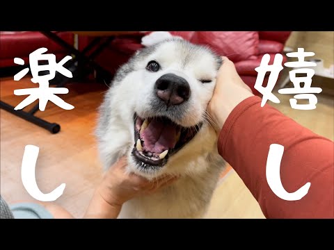 酔っ払いママに遊んでもらって嬉し楽しそうなシベリアンハスキー