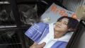 【タヌキと二人暮らし】風呂に入れられふて寝するタヌキ。(Tanuki is sulking in bed because I took him to a bath.)