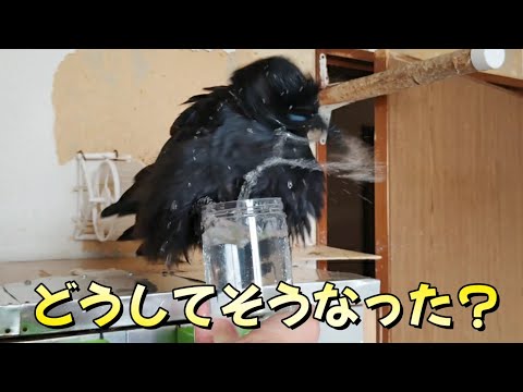 【大惨事】食後のカラスに冷たい水を与えたかったのですが…こうなりましたとさ 20220825、カラス&四つ足カルテット