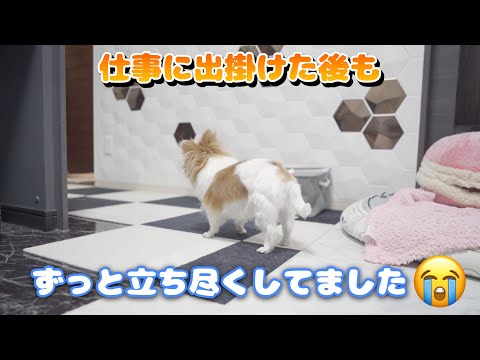 飼い主が家を出た後も、ずっと玄関先を見つめ続ける老犬チョッピ