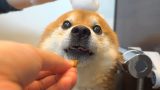 飼い主と一緒に寝る準備をする柴犬がこちら。