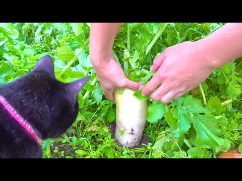 黒猫と巨大な大根を収穫してたくあん作ってみた。