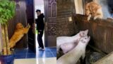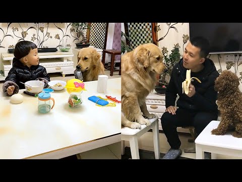 Child leaves his food to golden retriever????Funny dog hates smelly socks????