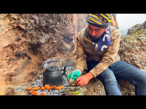 DAĞLARDA KAR YAĞIYOR BİZDE KAYA DİBİNDE MANGAL VE ÇAY YAPIYORUZ—DEREDE KAYBOLAN ADAM