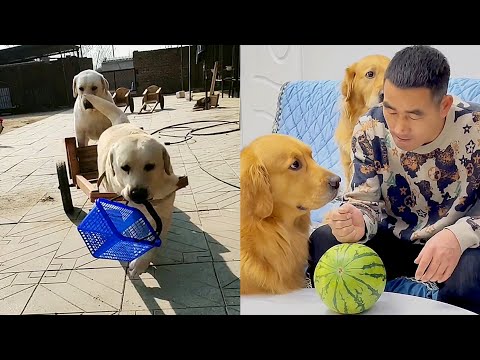 Funny dog drives his wife to go shopping????Golden Retrievers smell meat while they sleep????