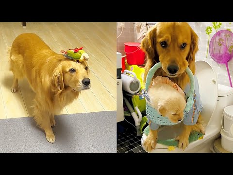 Golden Retriever - Dog AwesomeGolden Retriever and bird playing together.????Dogs need to take children to the toilet????