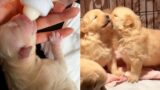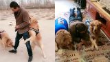 Golden Retriever and bird playing together.????Dogs need to take children to the toilet????