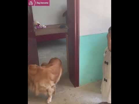 Golden retriever and girl play hide and seek????
