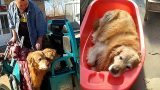 Golden retriever delivers food to pigs????The dog wants to take a bath after exercising????????️