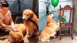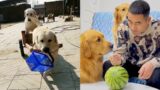 Golden Retriever gives toys to puppy????
