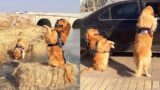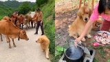 Golden Retriever helps owner feed pigs????Dog stops owner from making dangerous moves????