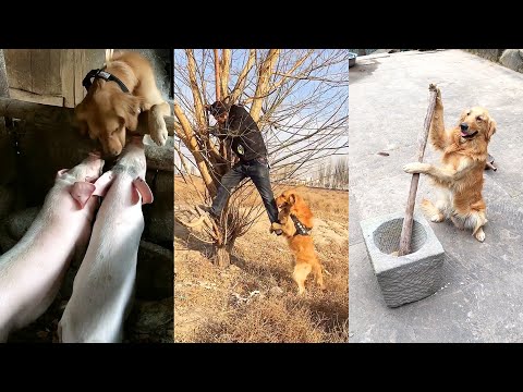 Golden Retriever - Dog AwesomeGolden Retriever helps owner feed pigs????Dog stops owner from making dangerous moves????