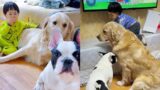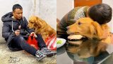 Golden Retriever herding cattle and feeding pigs on the farm????Dog and owner play together????