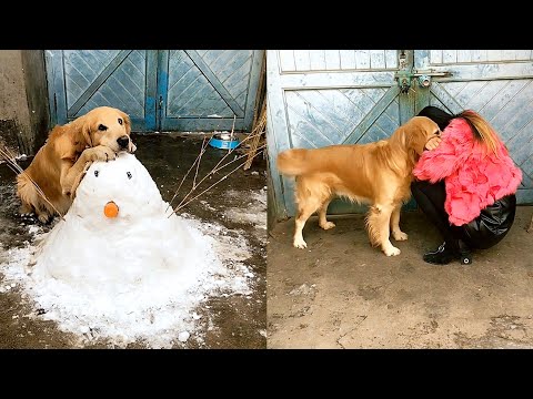 Golden Retriever - Dog AwesomeGolden retriever jealous that snowman is prettier than him????Dog comforts sad owner????