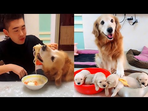 Golden Retriever - Dog AwesomeGolden Retriever robs its owner of food????Funny dog petting his child????