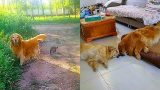 Golden Retriever robs its owner of food????Funny dog petting his child????